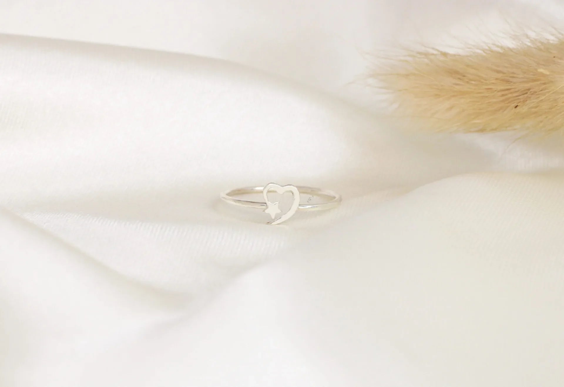 Celestial Love Ring – Sterling Silver Heart with Shooting Star Charm