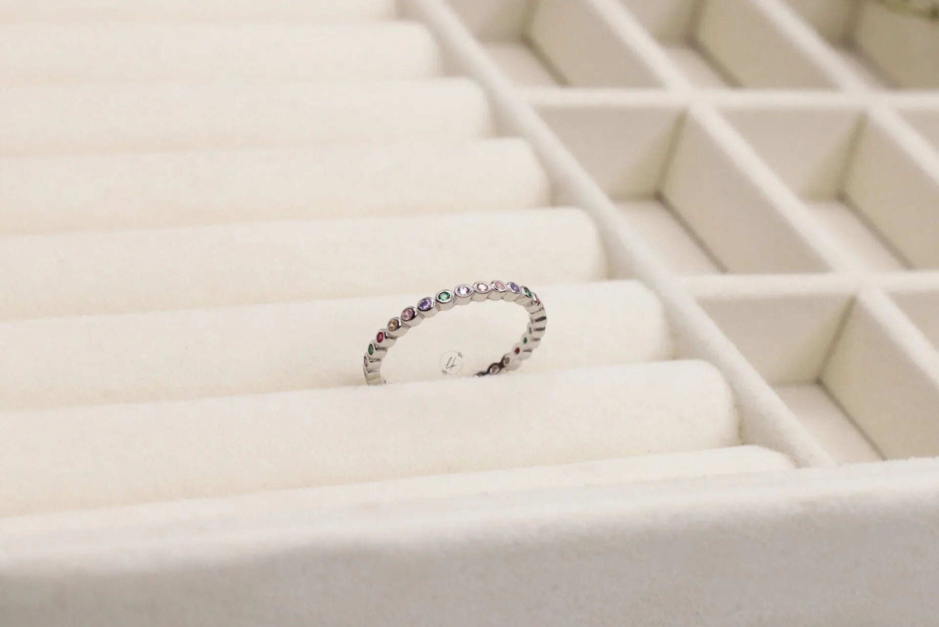 Eternal Sparkle: Multicolor Gemstone Eternity Band in Premium 925 Sterling Silver – Elegant Handmade Jewelry