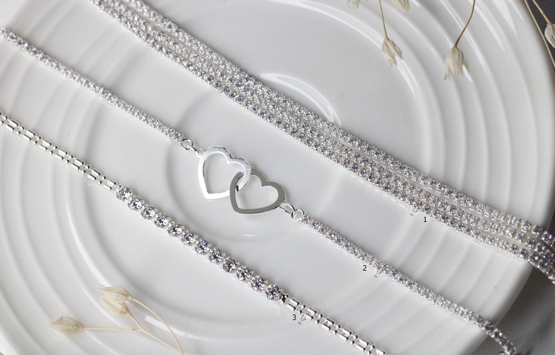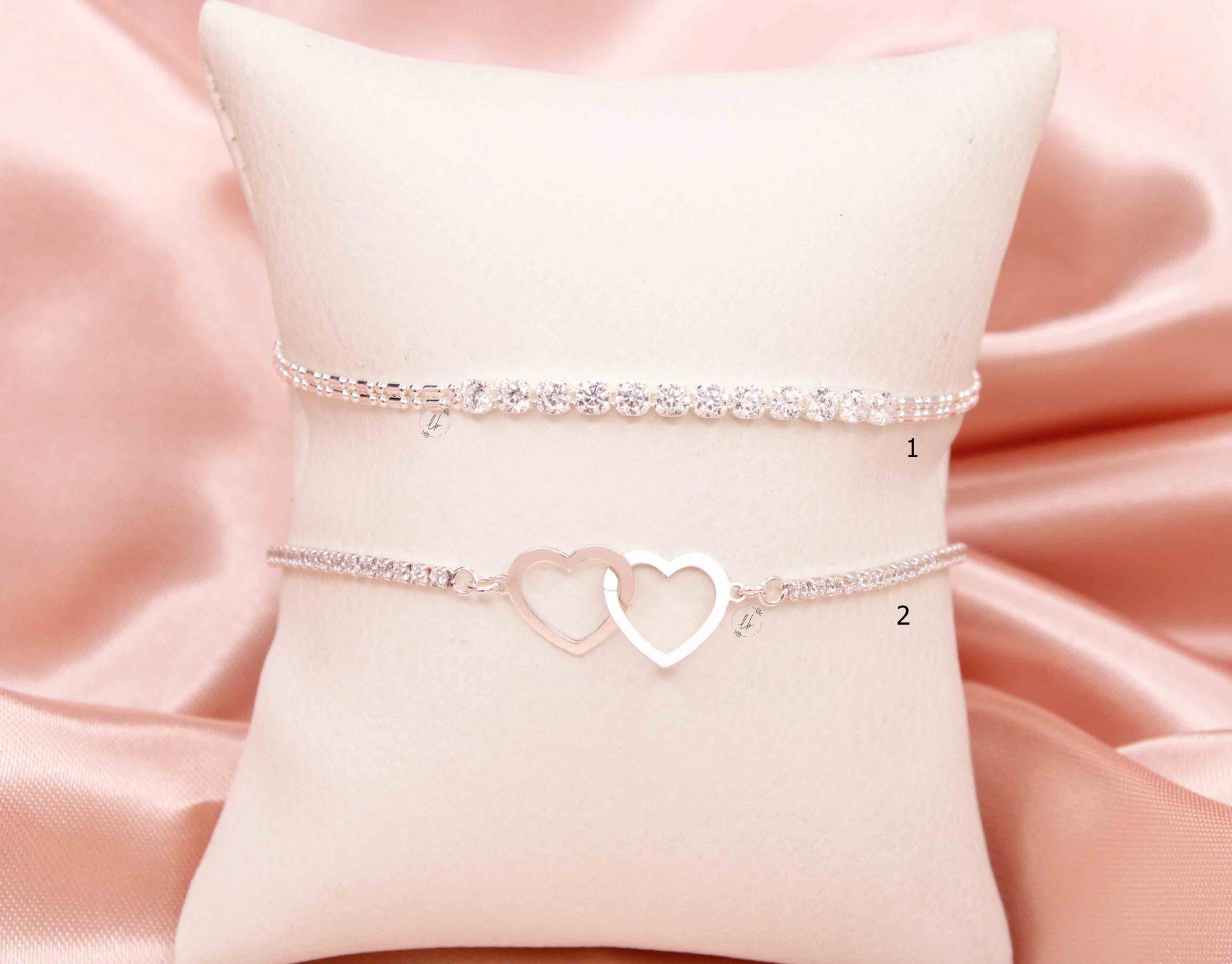 PULSERA DOBLE CORAZON CON CIRCONES BLANCOS Y EXTENSION
